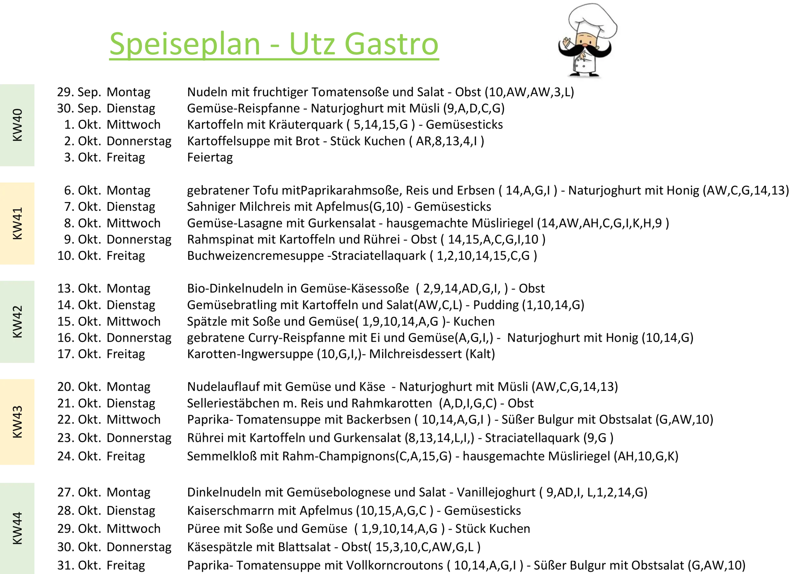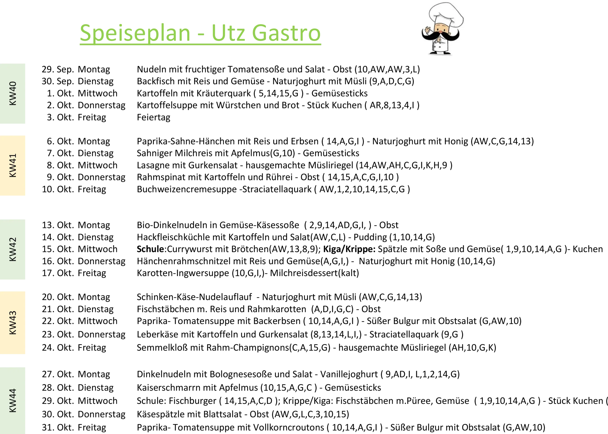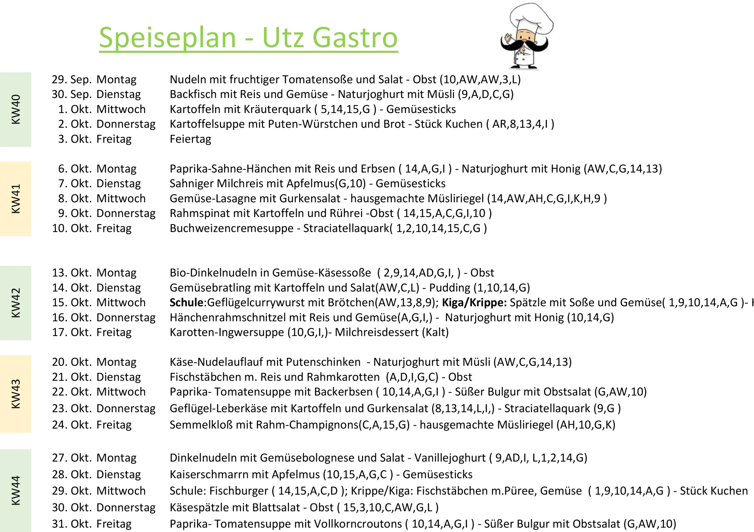 Wir erstellen jede Woche einen neuen Mensaplan für die Schüler/innen sowie Kindergartenkinder an folgenden Schulen und Kindergärten: