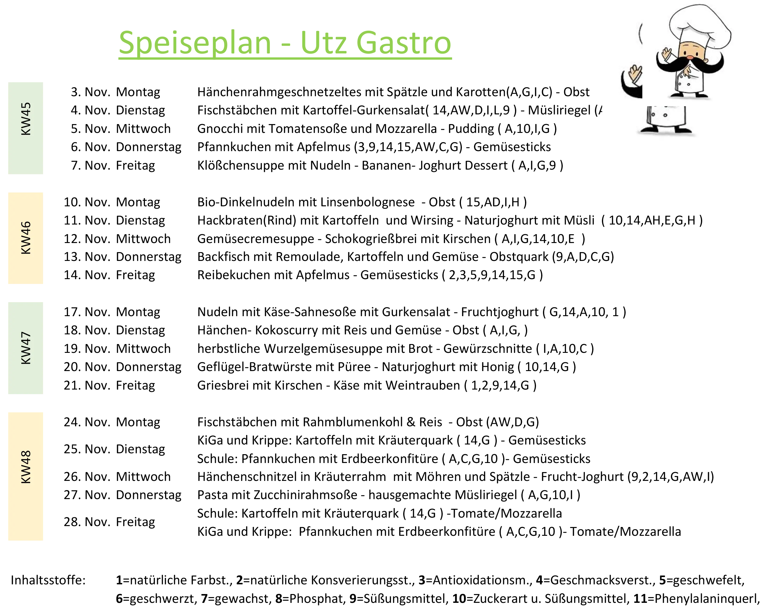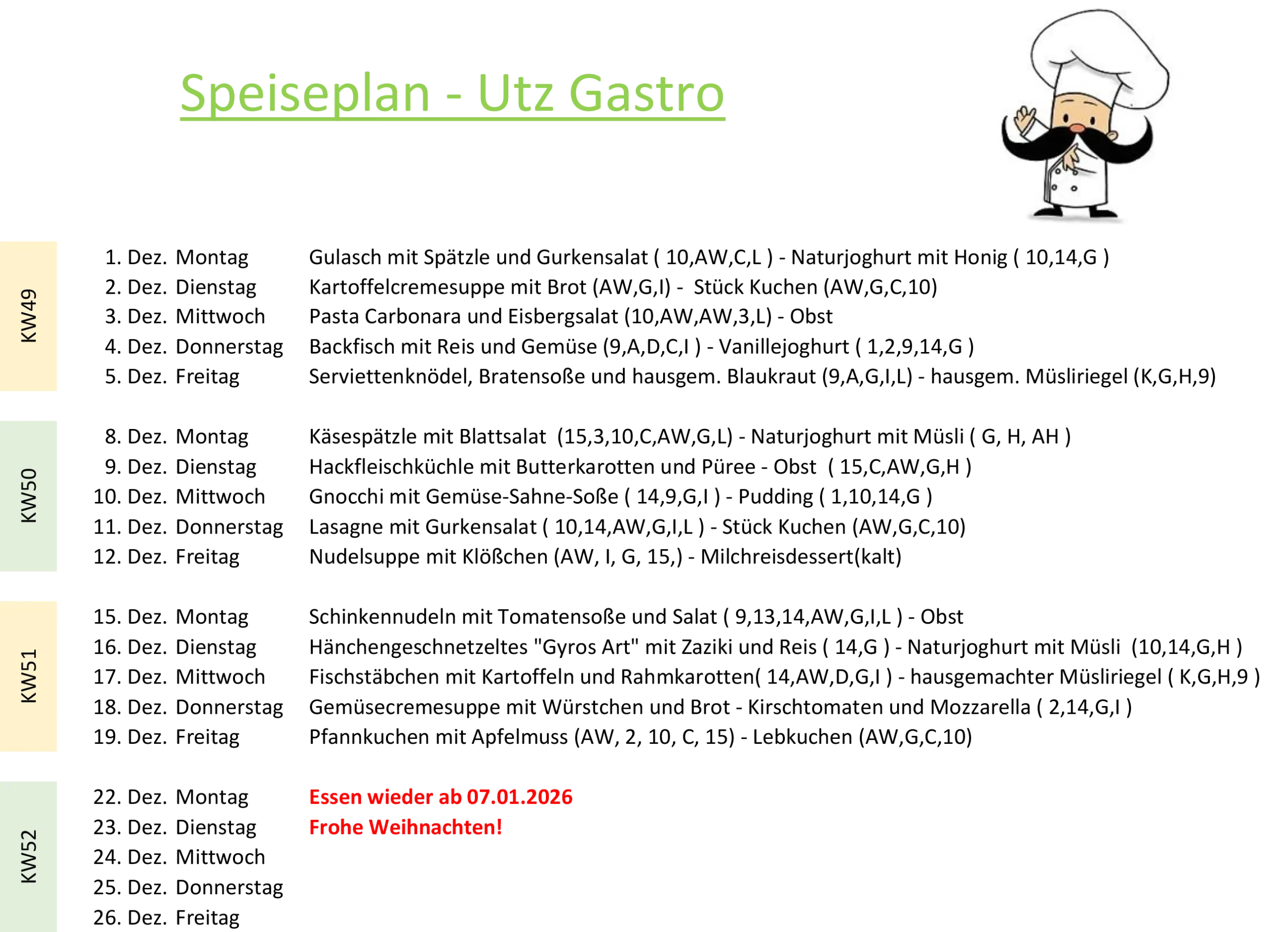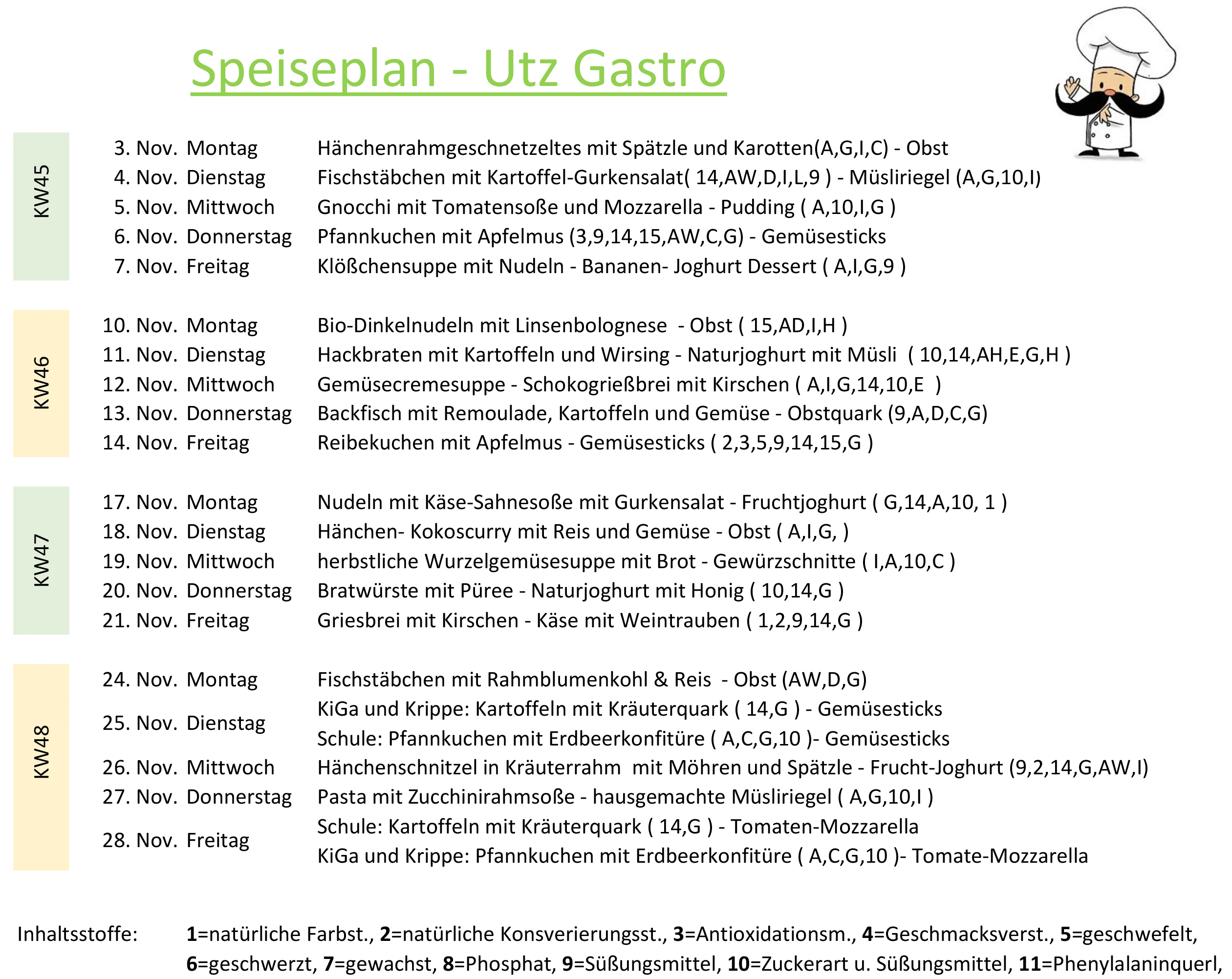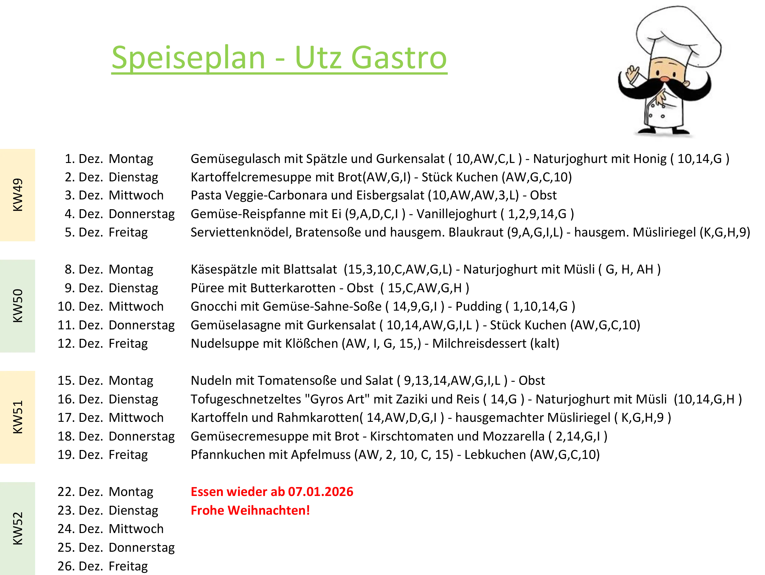 Wir erstellen jede Woche einen neuen Mensaplan für die Schüler/innen sowie Kindergartenkinder an folgenden Schulen und Kindergärten: